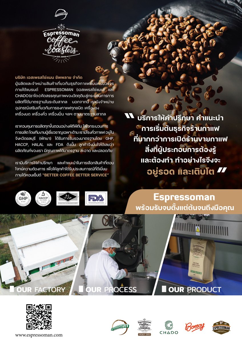 มีโรงงานผลิตที่ได้รับมาตรฐาน รองรับการทำ OEM/ODM รับผลิตสินค้าตามความต้องการของลูกค้าที่ต้องการสร้างแบรนด์เป็นของตนเอง และยินดีให้คำปรึกษากับผู้ที่สนใจเริ่มทำธุรกิจร้านกาแฟ